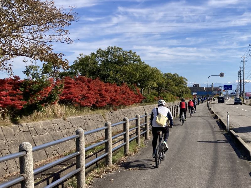 先頭を走る伊藤リーダーは「ゆっくり走るし、ちょこちょこ休む!」と宣言したが、いつも並みに早い。しかし、皆さんのペダリングはしっかりしていて、伴走車は不要だったかもしれない