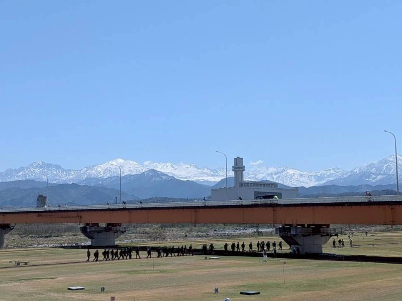 青空に映えるのは、雪をまとった立山連峰の雄姿