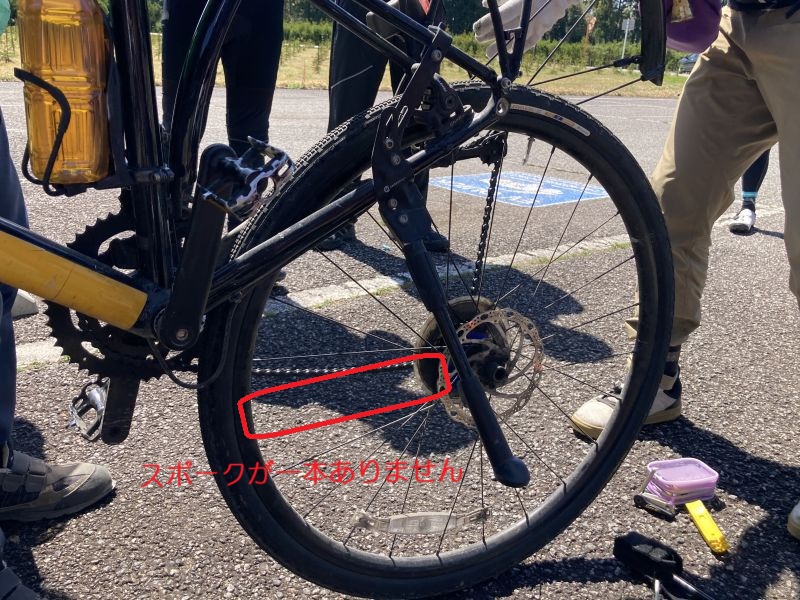 多才なメカニックたちが即座に原因を究明、スポーク折れによる振れを特定する